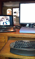 So last Christmas, while I was at work one day my wonderful husband moved my office from upstairs down into the living room. He created a fabulous work space for me, including dual computer screens so I can work simultaneously on two projects at once, or have my e-mail on one while I write my stories on the other. It’s very easy to move from my laptop screen to the much larger screen in front of me that is ergonomically in just the right position. I must say that I’ve gotten spoiled having this feature but my neck and back pain have improved greatly.